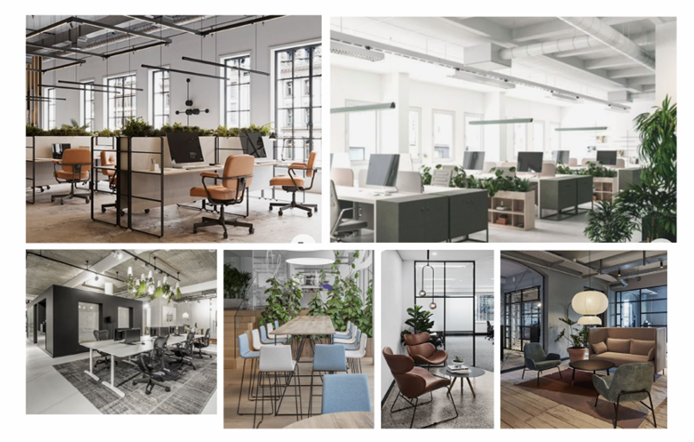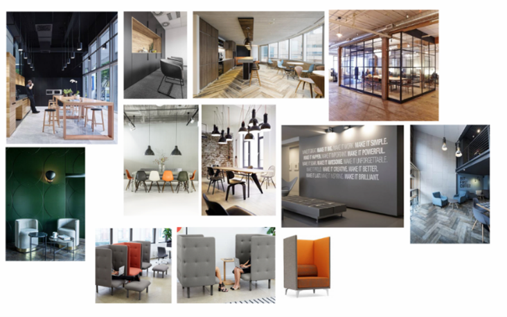 The process begins with the creation of various mood boards. During this stage, Flexible gathers a range of images to highlight both the ideal look and feel of the space, as well as ideas for furniture solutions. We started with mood boards, curating a palette of colours, textures, and materials that captured FourNet’s ethos. These visual cues ensured everyone was agreed on the aesthetic direction.
